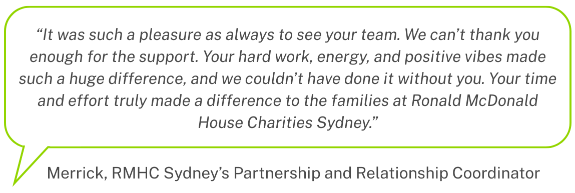 The following morning we opened our inbox to a beautiful thank you from RMHC Sydney. It reminded us that the simplest gestures often leave the greatest impact.